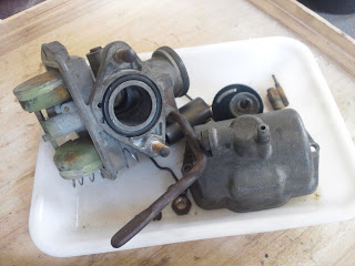 キャブの調整はエアスクリューの調整程度ですが、基本的に純正仕様のままなので掃除さえすれば調子は出そうな気がするんですが、出てこない。